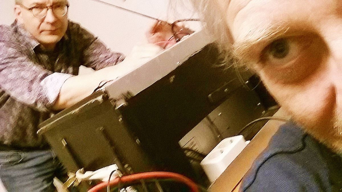 Hans Schuettler bei der Programmierung am analogen Modulsystems 2020