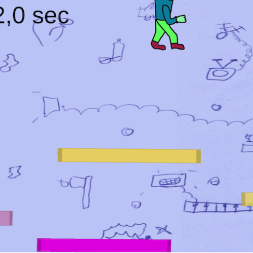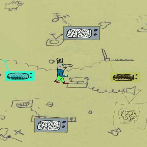 Zeichnungen animiert auf dem Bildschirm, dem Handy und auf der Bühne